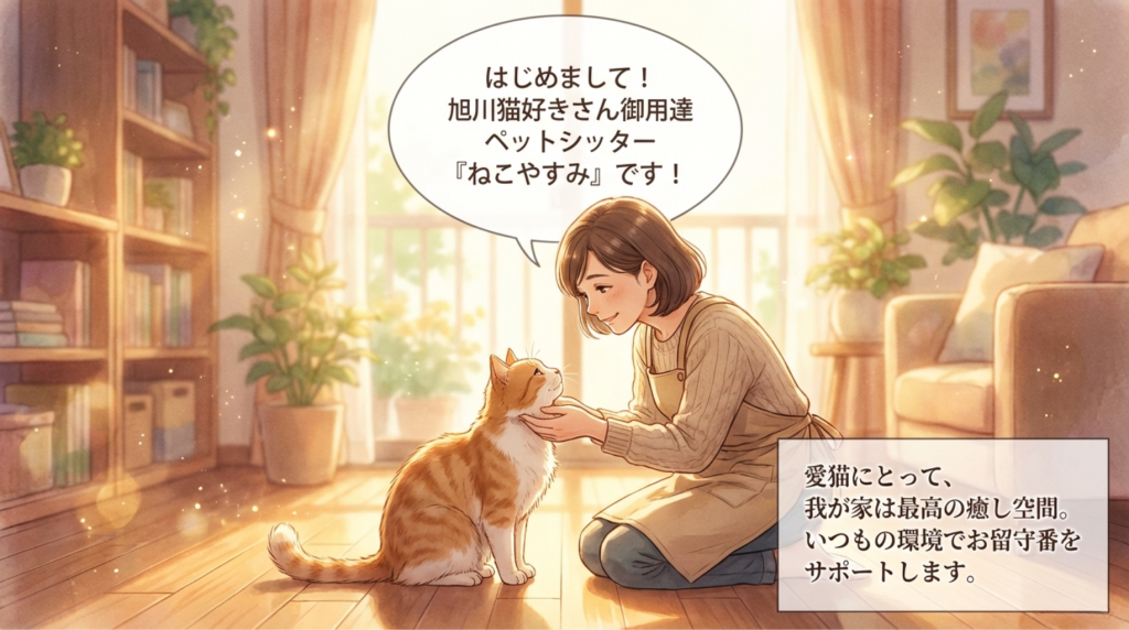 旭川市でキャットシッターとして活動しております、津山明子と申します。