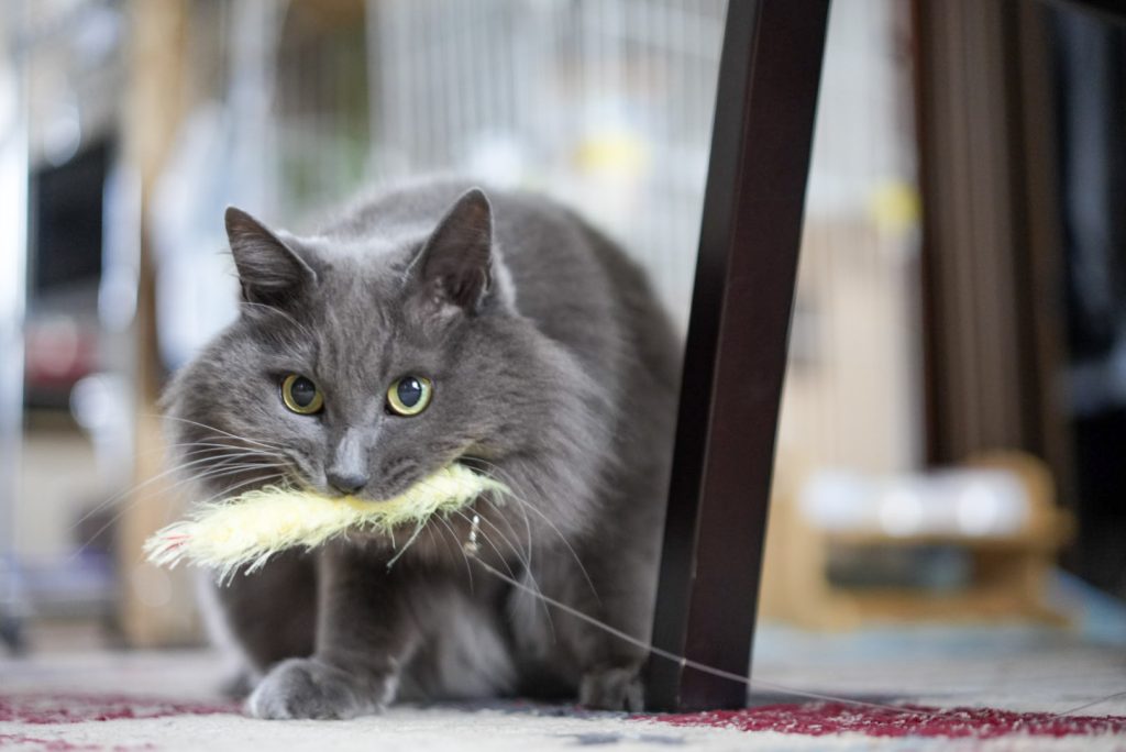 お世話初日。まずはもこちゃんの様子を見守りながら、お気に入りのおもちゃを取り出してみました。