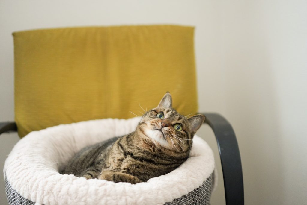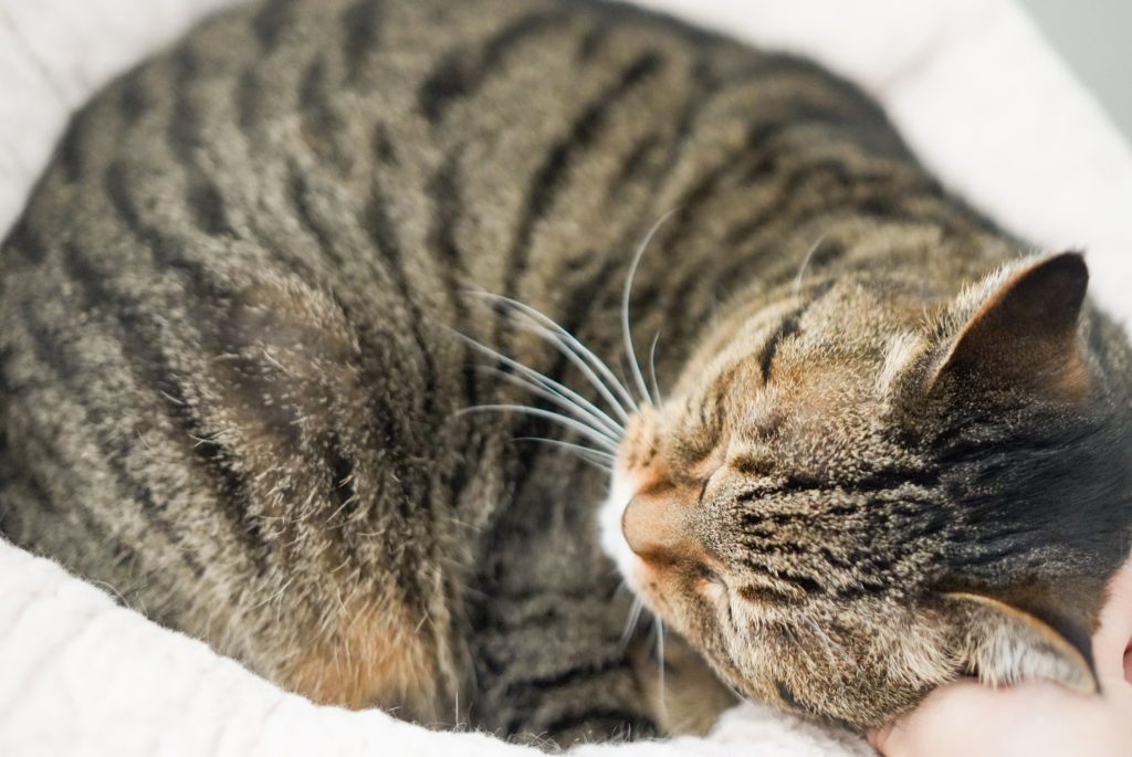 一方、入室した瞬間から、いつものお気に入りベッドで、もっちりとした体を丸め、くつろいでいる姿で穏やかに迎えてくれるのが、るいちゃんです。そんな姿を見ると、自然と私の心もほどけていきます。