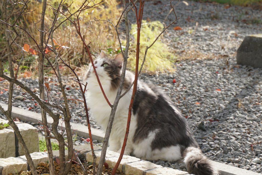他の猫とじゃれ合うのはあまり好きではなく、一匹でゆっくり過ごすことを好みます。若い猫たちがワチャワチャしているのを見ると、遠くから見守っていることが多いです。マイペースな性格で、落ち着いた佇まいは、まるでボス猫のよう。