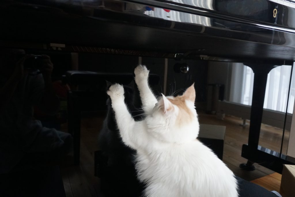 そして、ぺぺくんの一番の趣味は音楽鑑賞。特にピアノの音色が大好きで、私がピアノを弾き始めると、どこからともなくやってきてピアノの上で気持ちよく眠りだします。面白いことに、私が寝静まると、ぺぺくんがピアノの上を歩いて、自分で音を出したり、ピアノに映った自分の姿と話し掛けたりすることも。
