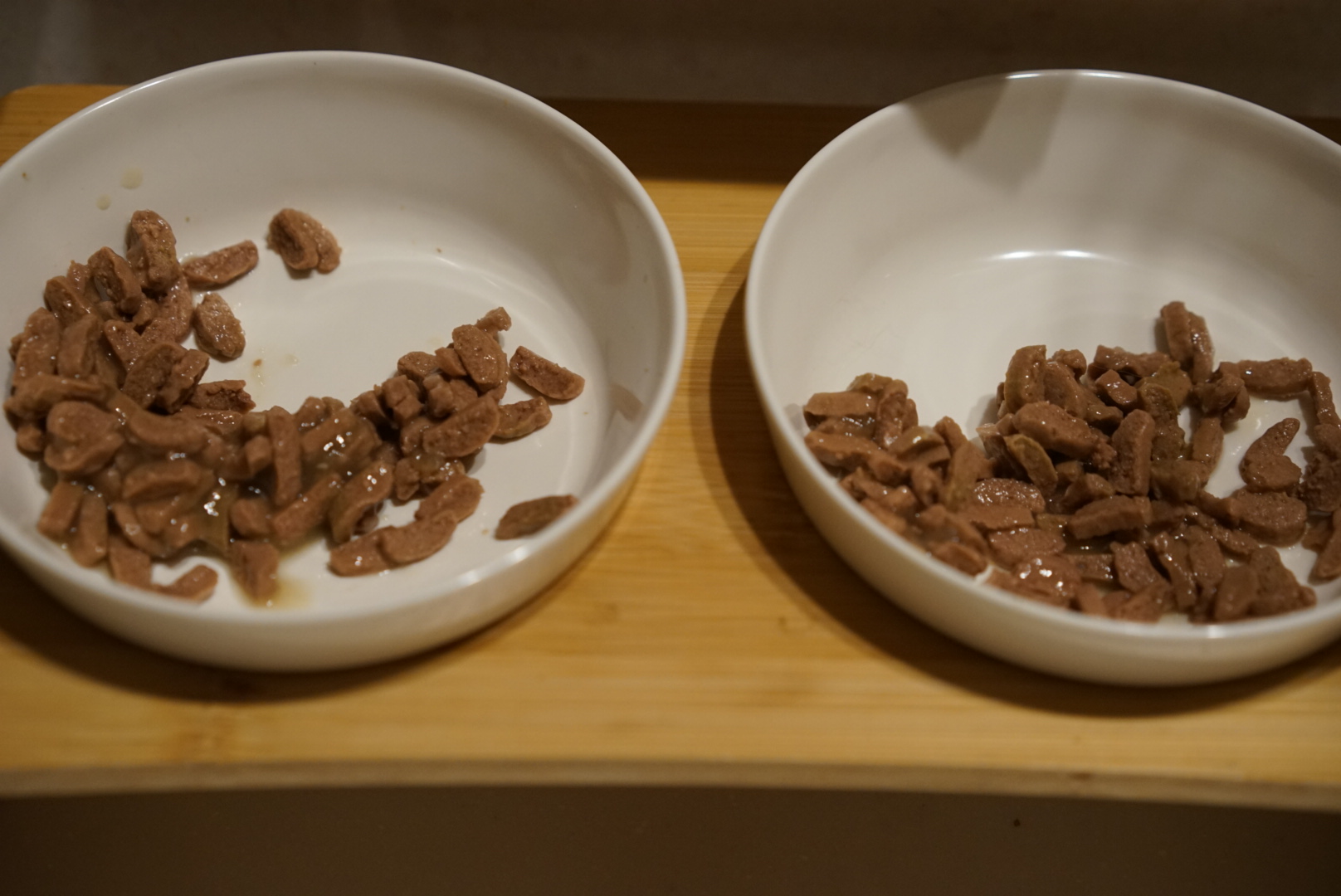 ペペとチャコのウェットパウチ。半分ずつね。高いから…。