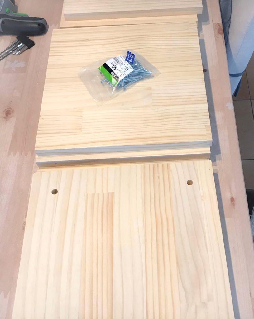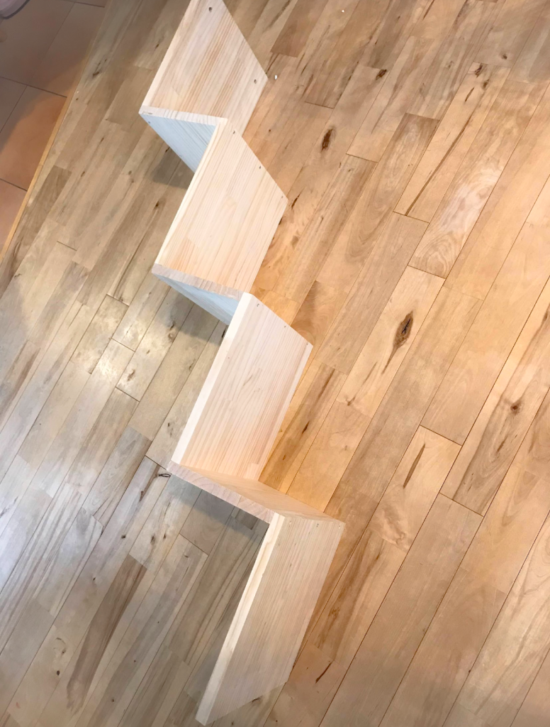 階段作成中。ホームセンターのネジコーナーで種類が豊富すぎて何時間も使った挙げ句、ねじのサイズを間違えるトラブルも。