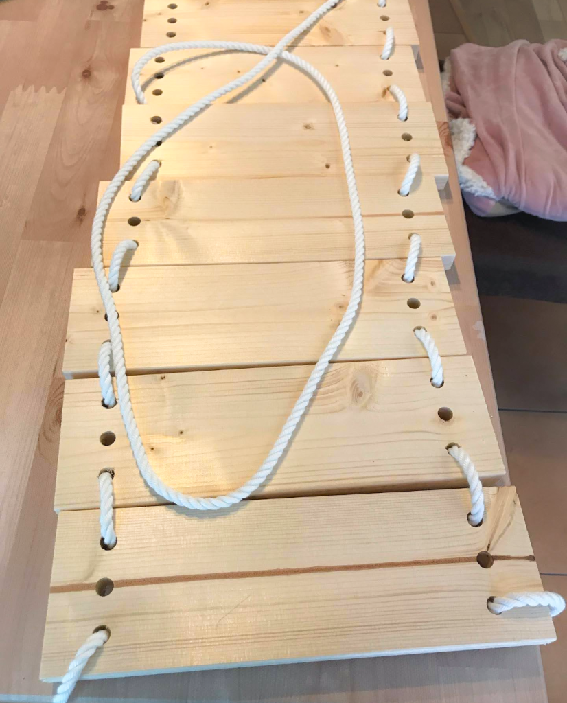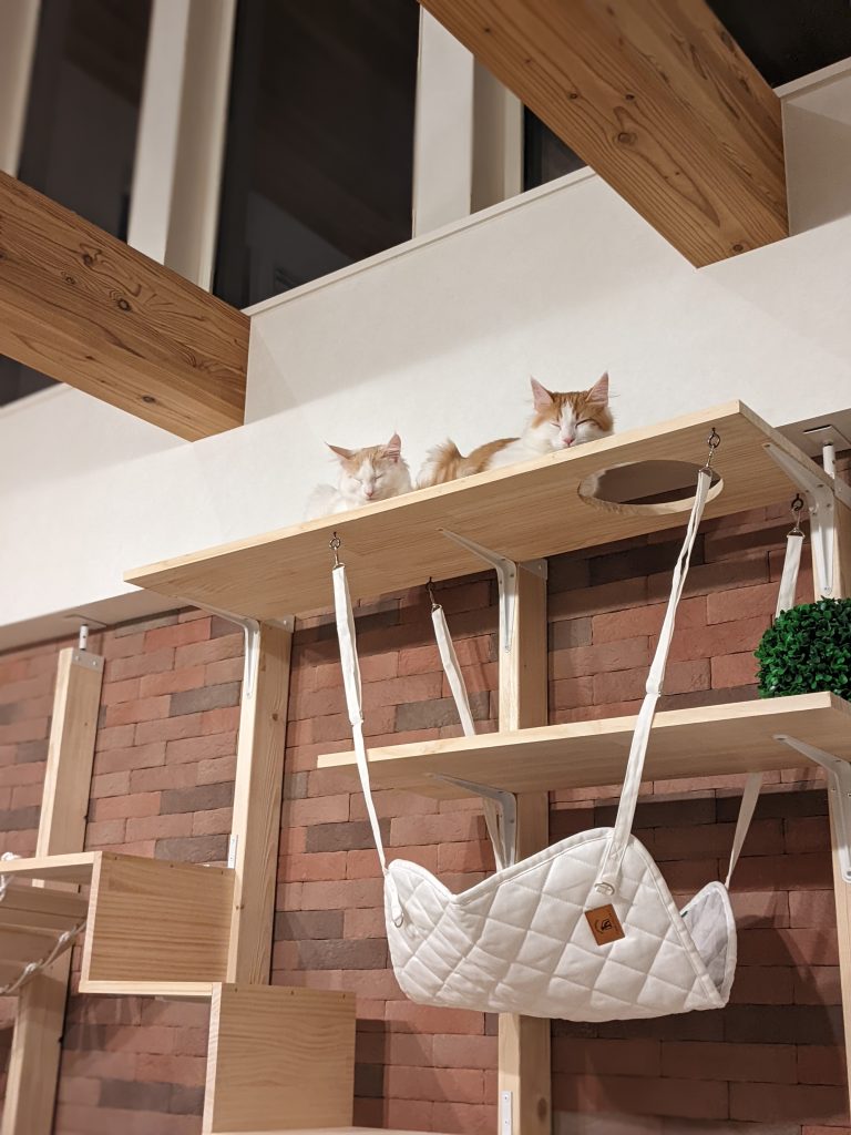 最初の頃、猫たちは揺れる橋に一歩も近づかず、私の努力は水の泡と化しました。数日後、落ち込む飼い主を見かねて、チャコが橋の上で寝てくれるように…!橋の上で安心して寝ている姿を見た時は、感動しました(涙)